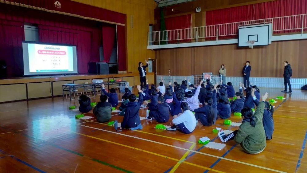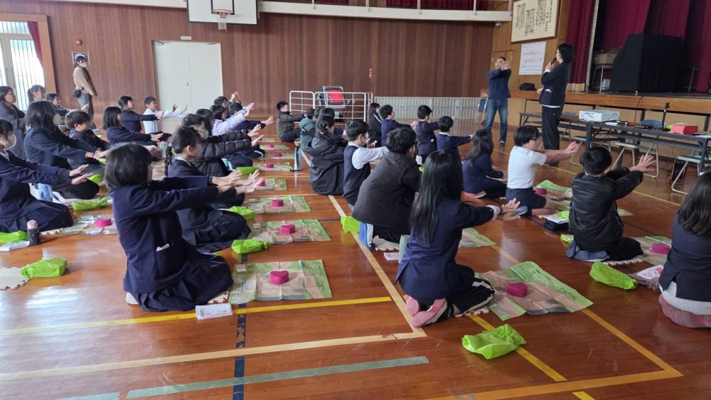 寒さを危惧していた我々の心配をよそに、体育館には特大の暖房器具も用意されて児童が快適に講習に臨める環境が整えられていました。